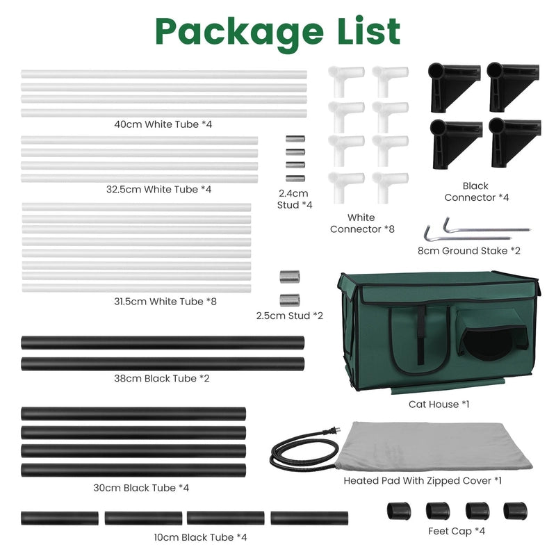 We've thought of everything! The sturdy legs and included metal stakes ensure your Heated Cat House stays firmly anchored, giving you total peace of mind that your cat's haven is secure, come what may.