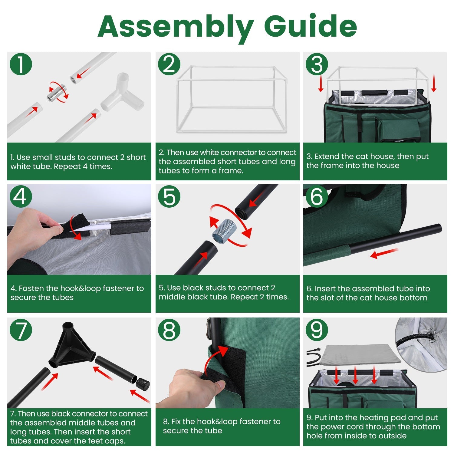 1Pc Waterproof Heated Cat House Outdoor Weatherproof Insulated Kitty Shelter Feral Cat Heating Bed With Heating Pad Anti-Chew Cord 2 Doors 3 Windows For Indoors Outdoors Winter Summer