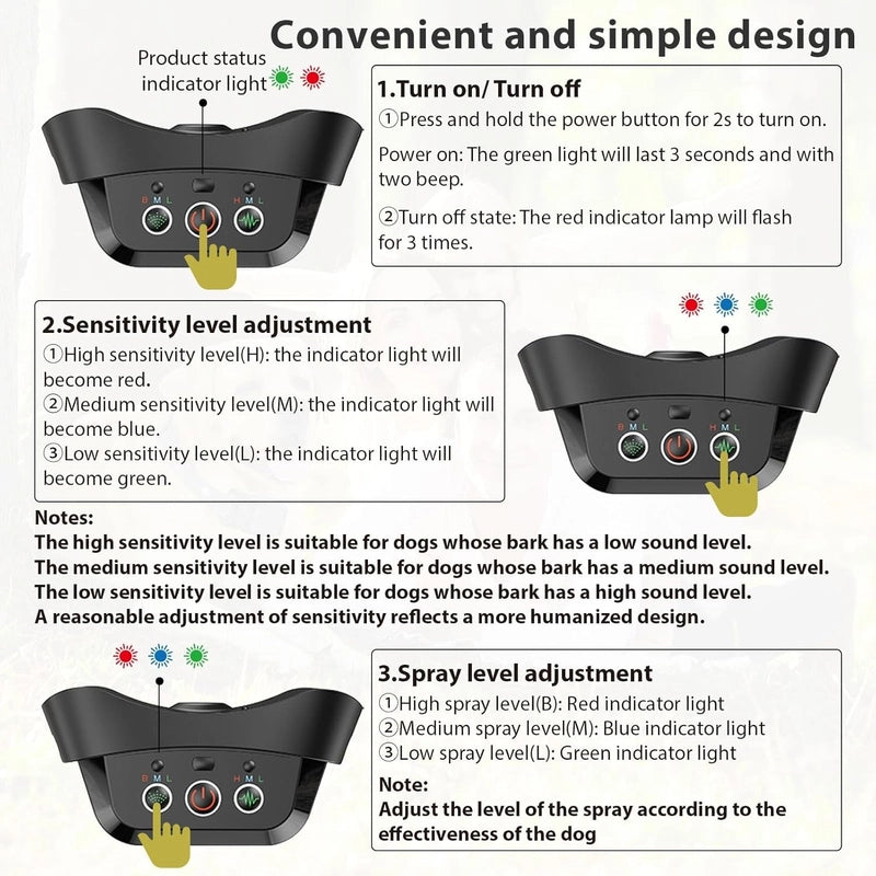 Say goodbye to harsh methods! a soft citronella mist teaches your dog without stress.