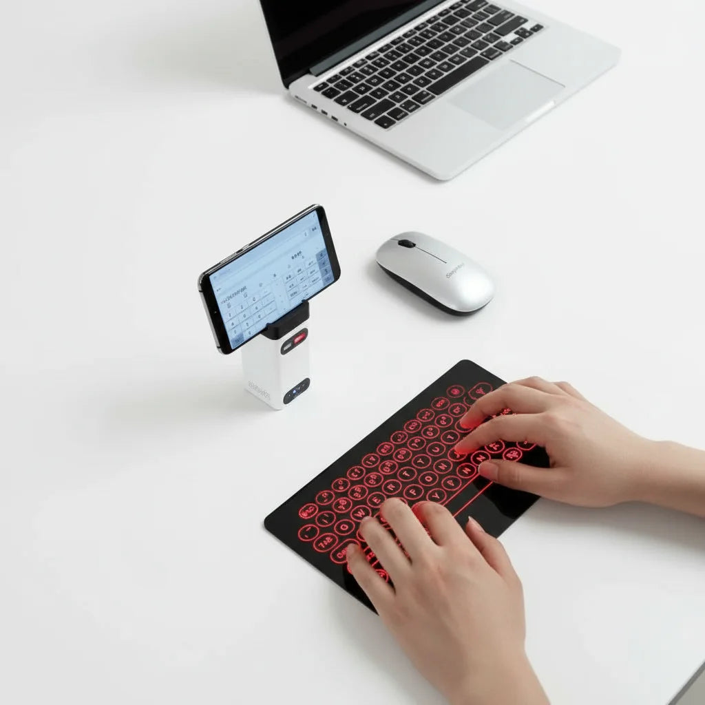 Project a full-size keyboard on any flat surface. Optimize your workspace effortlessly.